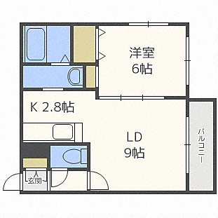 | 間取詳細 | リビングダイニング 9帖 キッチン 2.8帖 洋室 6帖 | ||