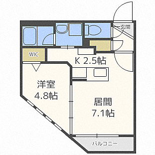 | 間取詳細 | リビングダイニング 7.1帖 キッチン 2.5帖 洋室 4.8帖 | ||